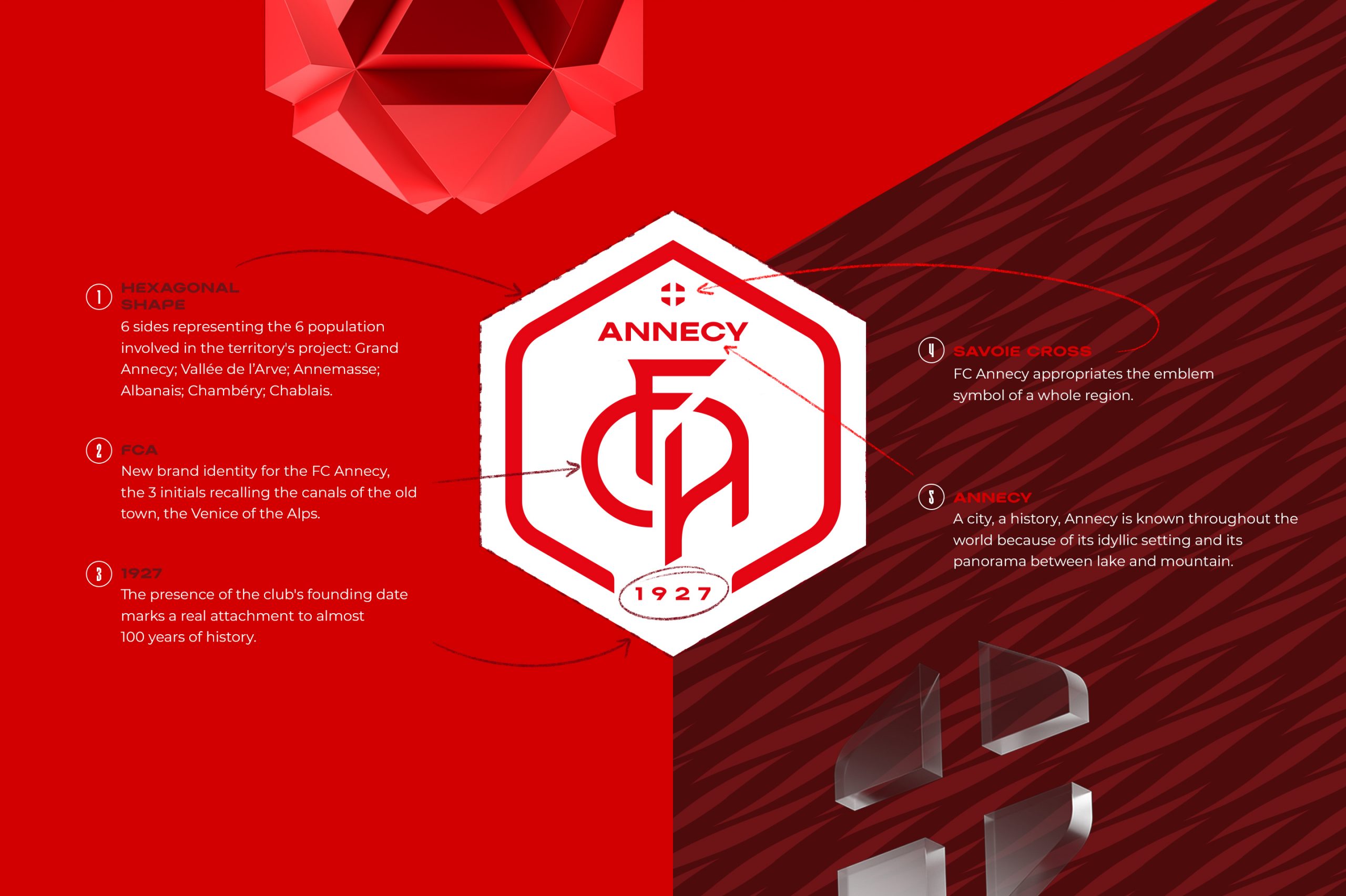 En 2022, à l’occasion de la montée en Ligue 2, nous avons rebrandé l’identité du FC Annecy. Pensée pour être moderne et en phase avec les codes actuels, cette nouvelle identité offre une flexibilité optimale. Chaque élément a été conçu pour refléter la dynamique et l’ambition du club, tout en renforçant son ancrage dans l’univers du football professionnel.
